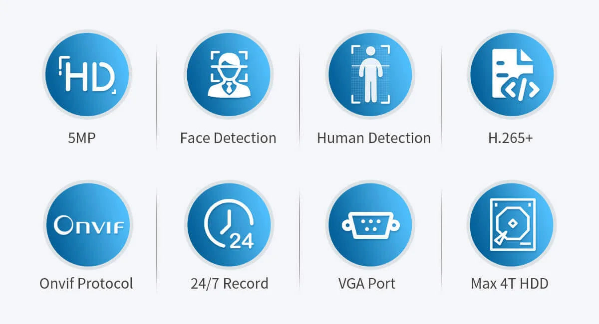 Il offre une prise en charge limitée des caméras IP, WiFi et filaires tierces compatibles ONVIF. Les fonctions intelligentes de recherche, de lecture et de sauvegarde améliorent la convivialité et la sécurité. Par exemple, il comprend un événement de détection de mouvement précis et des fonctions de recherche précises jusqu'à des intervalles d'une seconde.