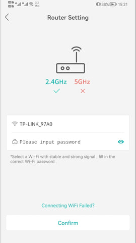Step 5: Input WiFi router password then confifm.(make sure your phone is in 2.4GHz WiFi network,5GHz network is not supported).